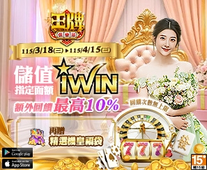 王牌俱樂部》3/18~4/15 儲值iWIN指定面額,享額外回饋最高10%,加贈【精選機皇福袋】!
