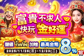 《金好運》11/26~12/23 儲值iWIN回饋最高8%金幣!