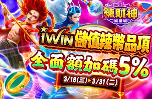 《辣財神》3/18~3/31 使用iWIN儲值,除了原有回饋,活動額外加碼「5%」,最高可獲得「119%」辣幣!