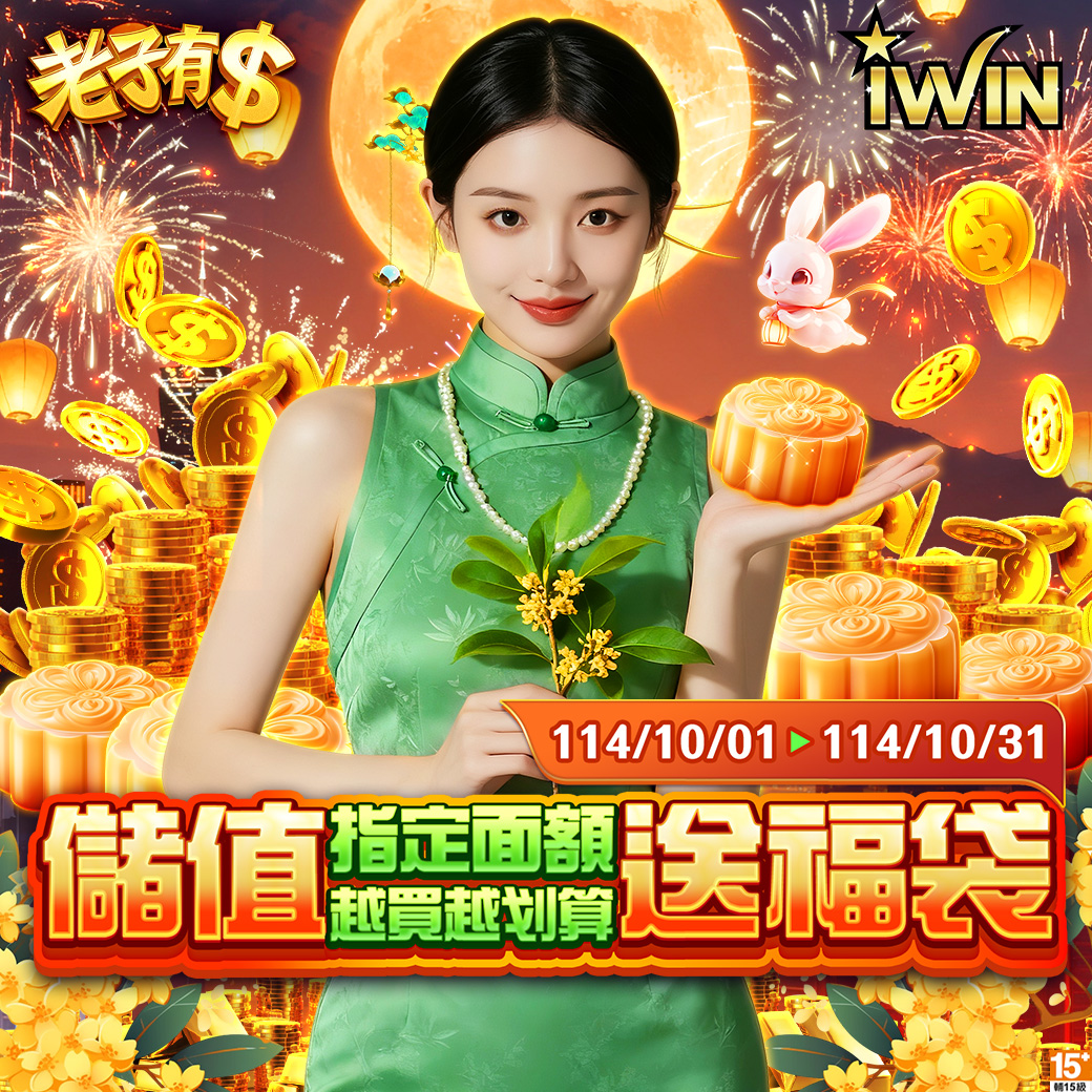《老子有錢》10/1~10/31 iWIN儲值加碼贈福袋