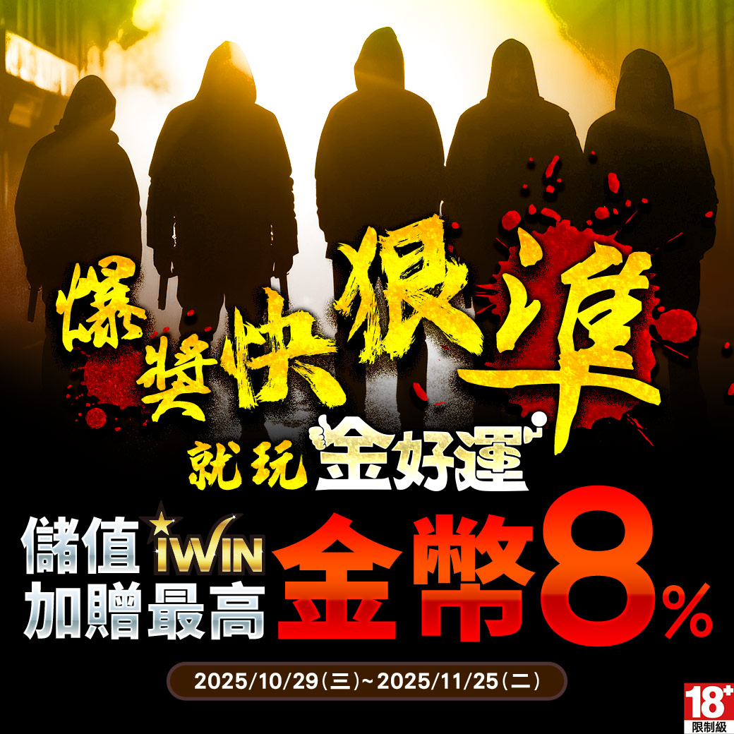 單筆儲台幣20,000元,金幣加送8%