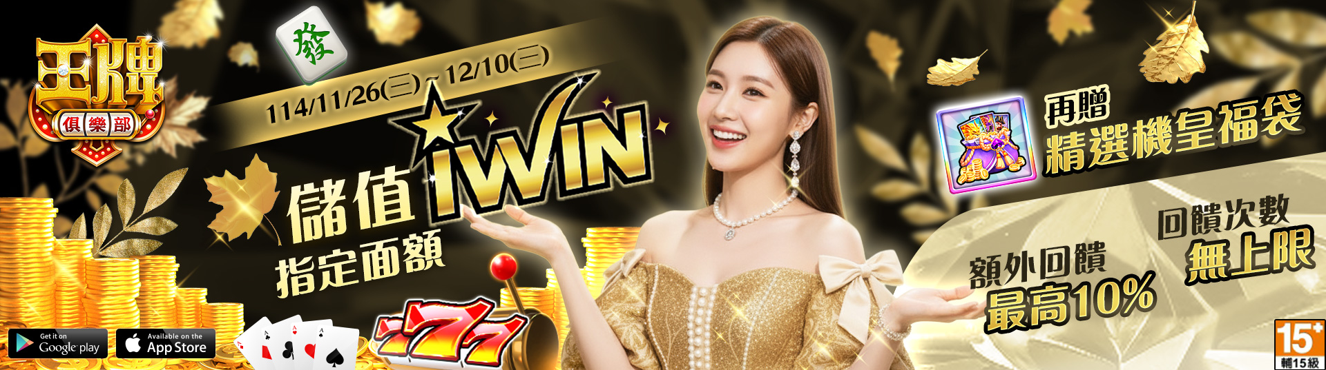 活動說明:活動期間內,使用【iWIN點數卡】儲值指定面額,享額外回饋最高10%,再加贈【精選機皇福袋】,讓您機皇一把抓,大獎帶回家!