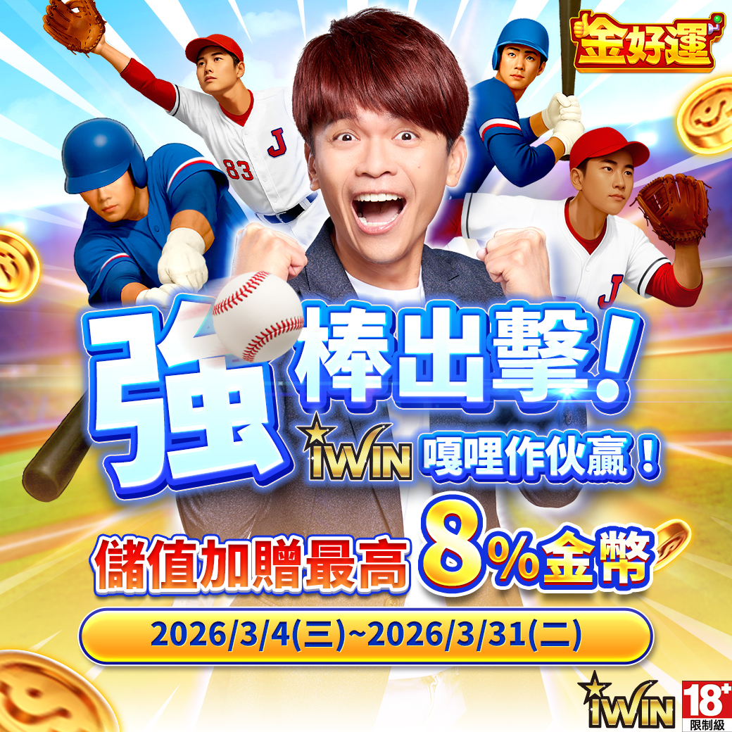 《金好運》3/4~3/31 儲值iWIN回饋最高8%金幣!