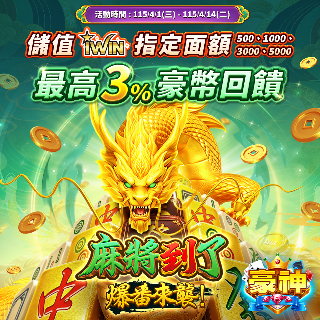 活動期間,透過 iWIN 購買指定面額 500 / 1,000 / 3,000 / 5,000 點,並成功儲值至【豪神娛樂城】遊戲帳號內,最高可享 3% 豪幣回饋!