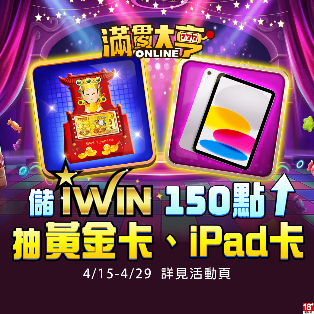 活動內容:儲iWIN 150點以上面額, 抽黃金卡、ipad卡